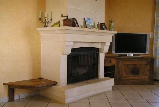 Fabrication en noyer,, intérieur peuplier.Ajustage sur les pierres de la cheminée.
