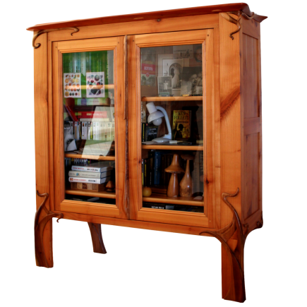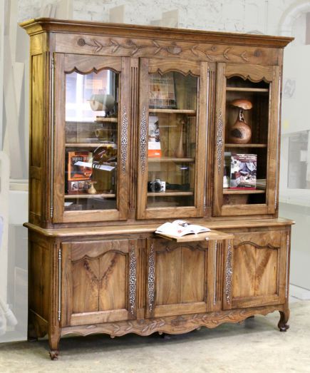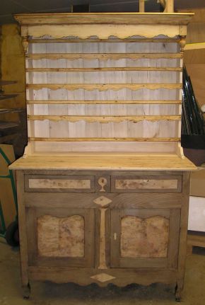 Fabrication en noyer, Les motifs sont assortis à l'armoire présente dans la même pièce. Finition cirée