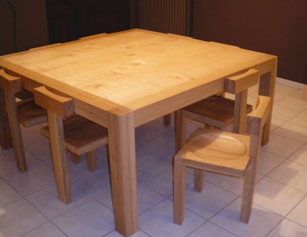 Tables sur mesure, Toutes essences de bois, toutes dimensions. Avec ou sans allonges. Les chaises peuvent être fabriquées, assorties à la table.