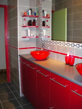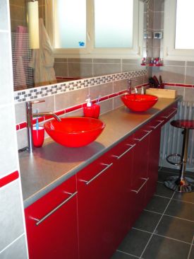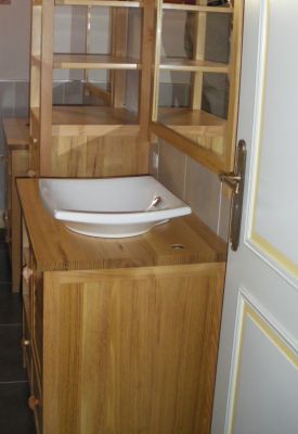 Fabrication en hêtre teinté wengé, Chaque salle de bain a sa couleur.